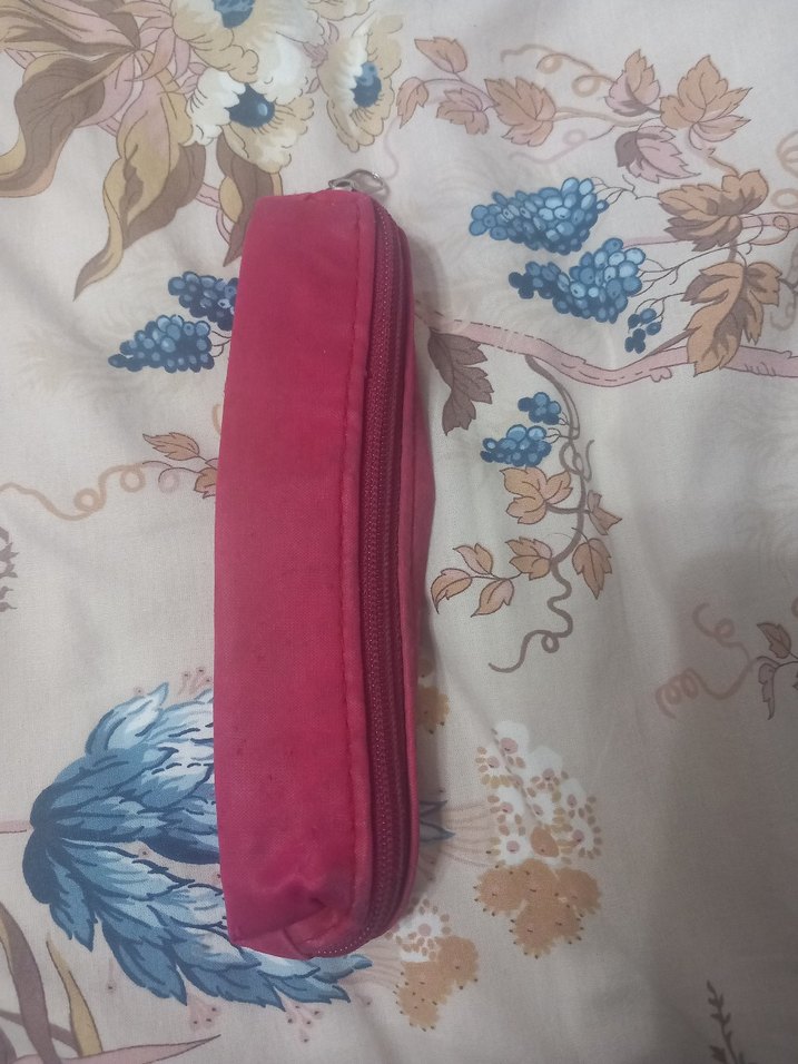 Sentetik kumaştan, fermuarlı, pastel pembe renkte, minimalist tarzda günlük kullanıma uygun kalemlik