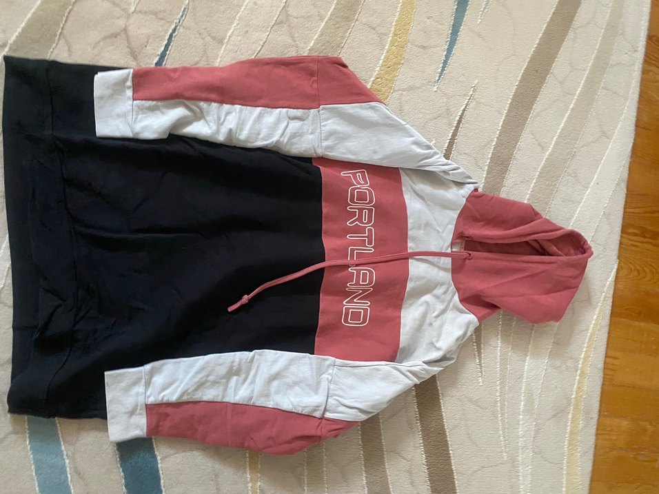 Bol kesim, uzun kollu ve fermuarlı bu kapüşonlu sweatshirt, "PORTLAND" baskılı koyu pembe ve beyaz renk bloklarına sahiptir. Rahat ve yumuşak kumaştan üretilmiştir.