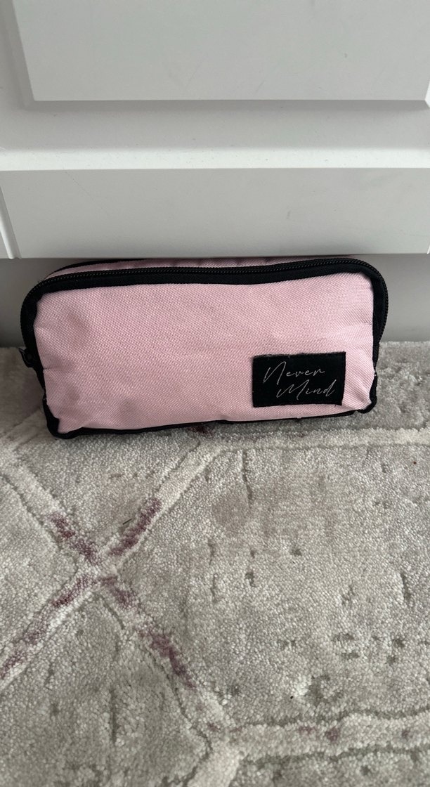 iki gözlü pembe kız kalemlik never mind kalemlik köşesinde hafif bir tiftiklenme vardır görsellerde ve açıklamada belirtilmiştir