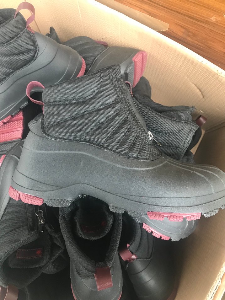 Fermuarlı tasarıma sahip koyu renkli kauçuk outdoor botları, pembe detaylarla sokak stili ve athleisure için uygundur. 36 38 40 41 numara mevcut