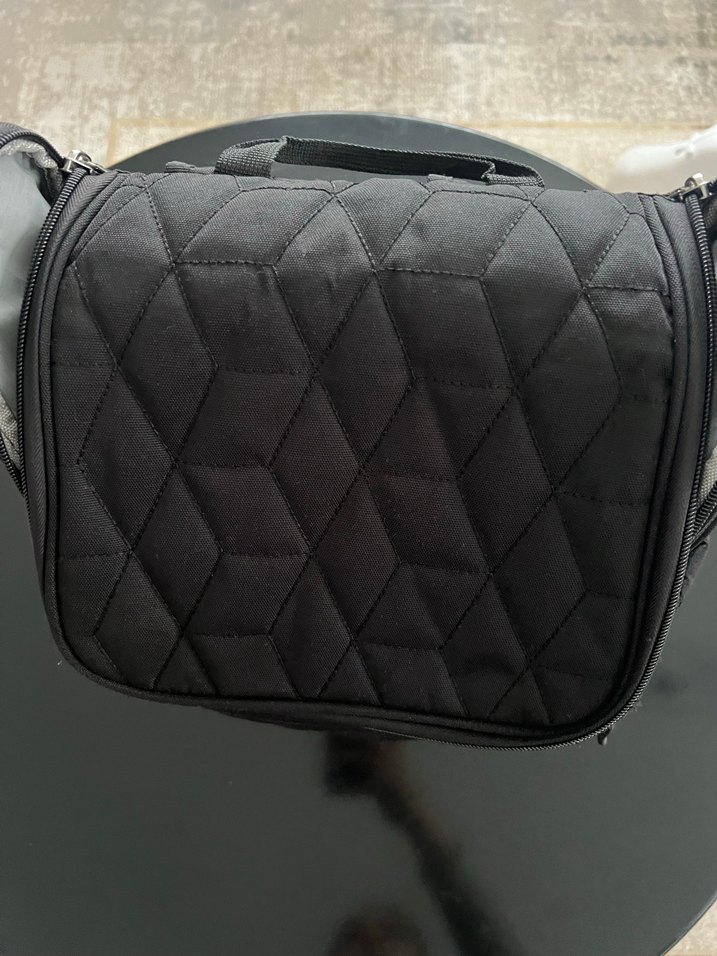 Siyah, fermuarlı ve sentetik kumaştan yapılmış anne çantasıdır . Minimalist ve desensiz tasarımı günlük kullanıma uygundur.