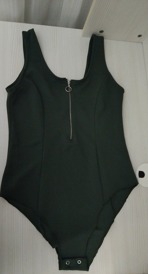Fermuarlı, kolsuz, siyah kadın mayo. Vücuda oturan, midi boy, atletik ve sokak stili için uygun.