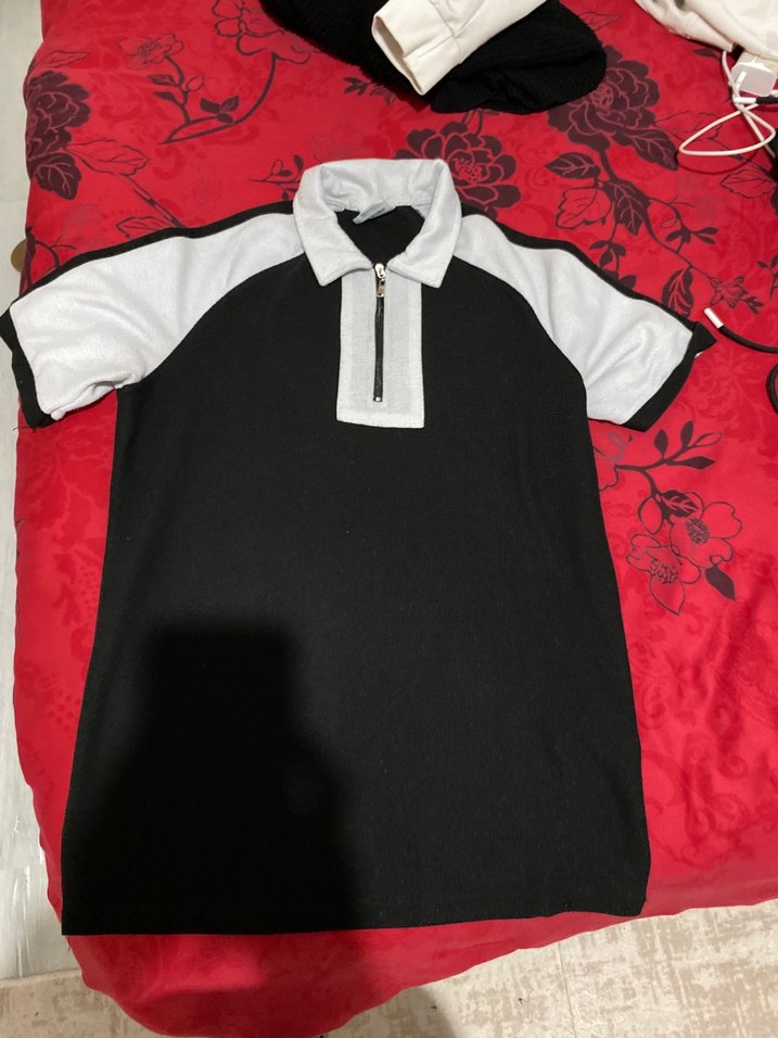 Fermuarlı Siyah Beyaz Erkek Polo Tişört