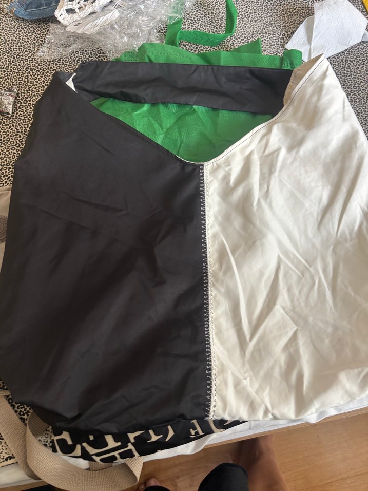 Kadınlar için , siyah beyaz renkte çanta. Sentetik kumaştan yapılmış, sokak giyimi ve athleisure tarzına uygun. İkincideki çanta az kullanıldı