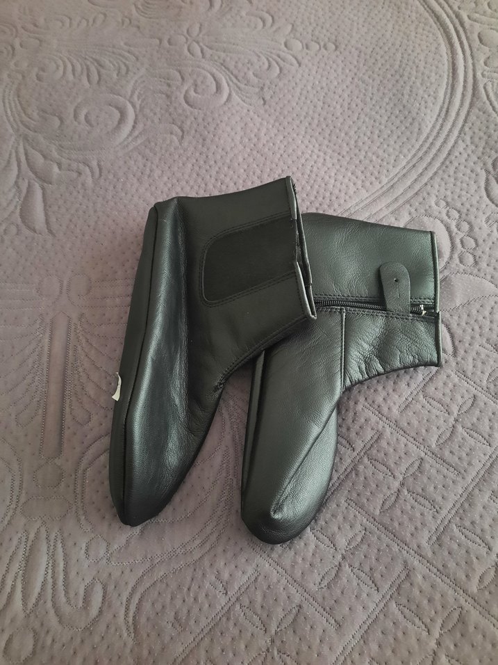Fermuarlı kapama ve rahat tasarıma sahip siyah biker tarzı erkek botları. Desensiz koyu deri şık bir görünüm sunar.İçi yünlü deri mes