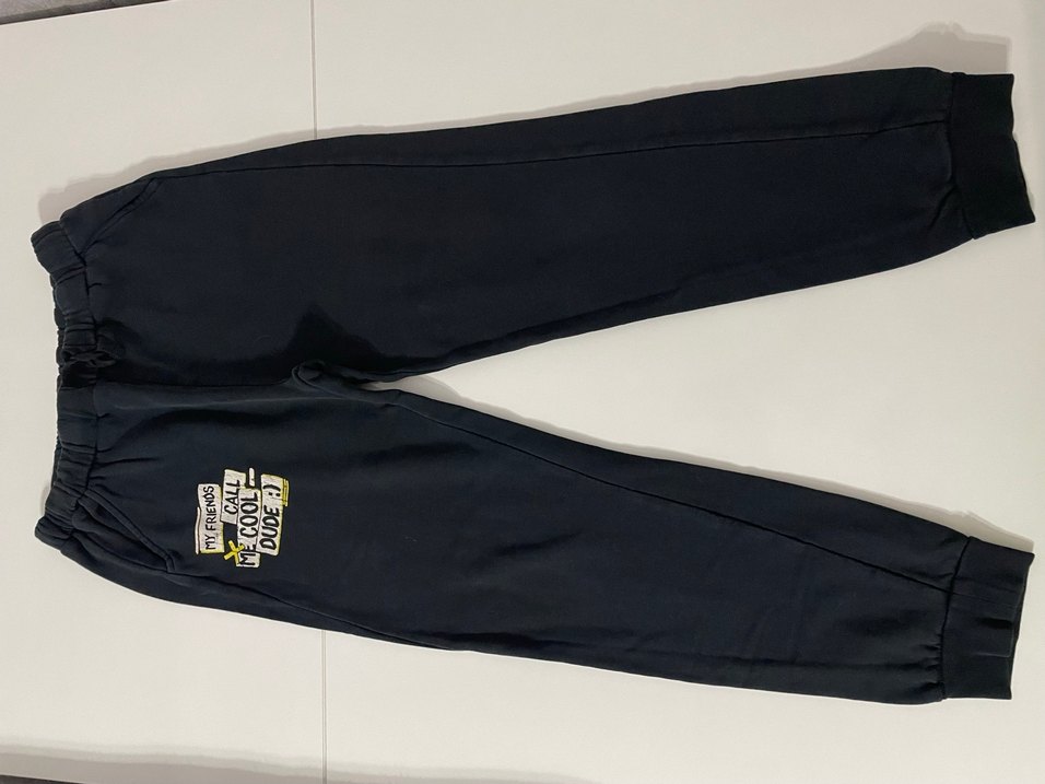 Fermuarlı detayları ve bol kesimiyle siyah çocuk eşofman altı. Yumuşak ve sıcak kumaştan, baskılı desene sahip, normal midi boyda, spor ve günlük kullanıma uygun.