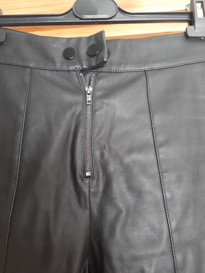 Fermuarlı ön kısmı ve normal midi boyu ile siyah deri biker pantolon. Günlük kullanım için sokak tarzı sunar. yüksek bel bel ölçüsü 30 basen 38 tam boy ölçüsü 92 santim içi polarlı tayt gibi sarar