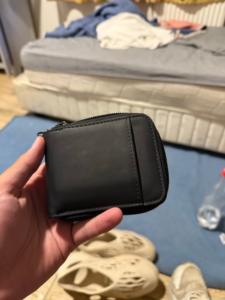 Fermuarlı kapama ve minimalist tasarıma sahip siyah deri kadın cüzdanı, günlük kullanım ve sokak stili için uygundur.