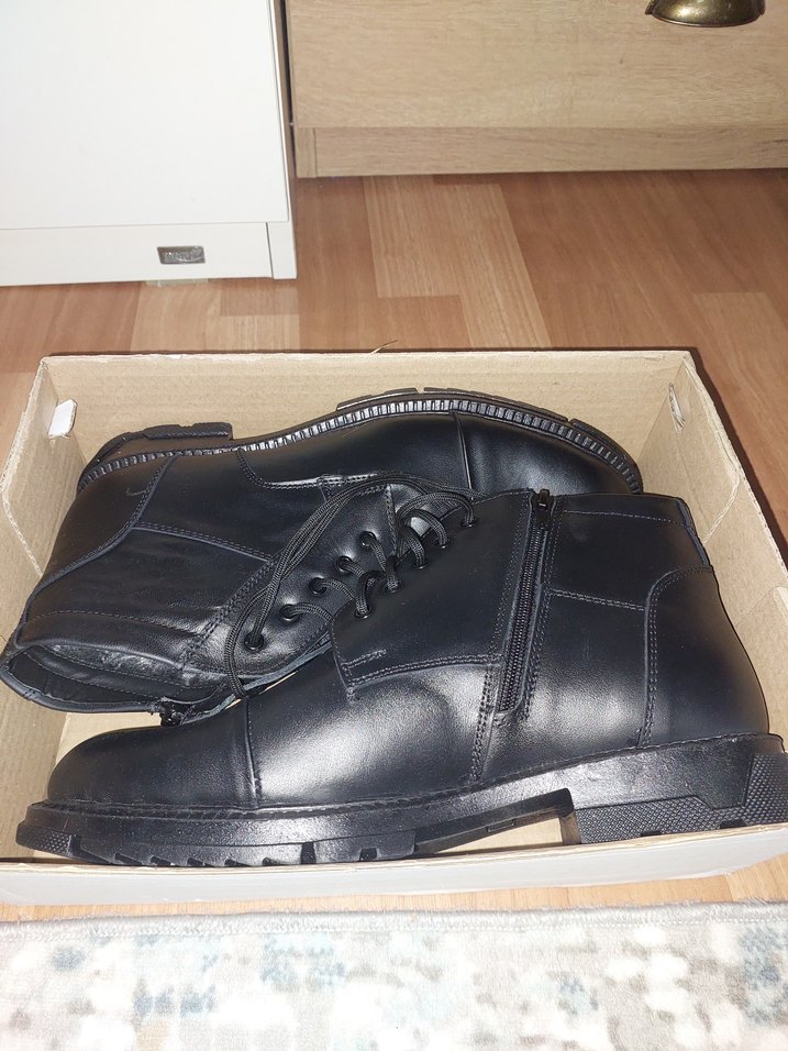 Fermuarlı, klasik tarzda siyah erkek biker botu. 43 numara ici kurklu sicak tutar 1 kere bile giyilmedi
