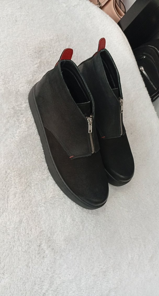 Fermuarlı Siyah Erkek Bot gerçek deri