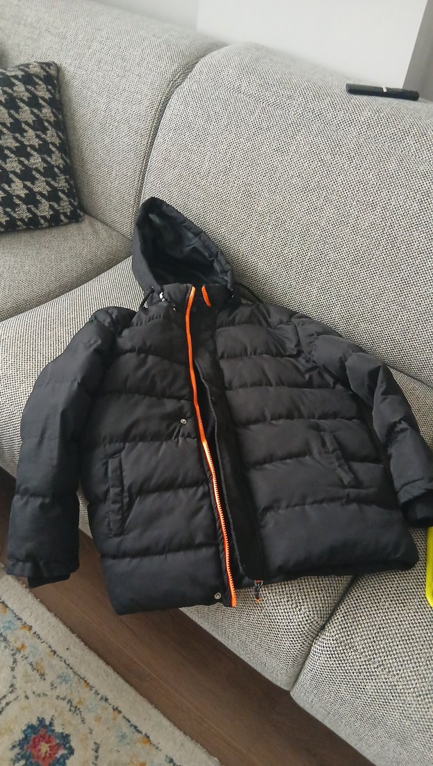 Fermuarlı, siyah renkli, erkek çocuklar için fitted kesim mont. Notched lapel yakalı, sokak stili ve yumuşak, sıcak kumaştan üretilmiştir. KAPŞON ASTARI SÖKÜKTÜR ONUN DIŞINDA BİR SIKINTI YOK YENİ VE ÇOK AZ GİYİLDİ KÜÇÜK GELDİ