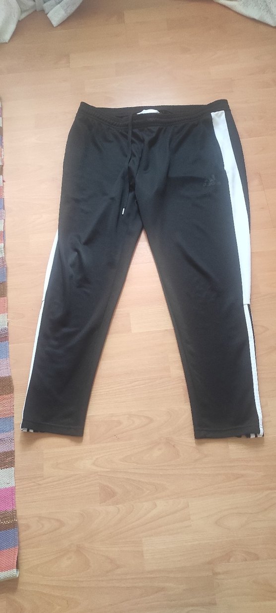 Fermuarlı detaylı, beyaz yan şeritli siyah erkek eşofman altı. Spor ve günlük kullanım için uygun, yumuşak sentetik kumaştan üretilmiştir. eşofman paçalarında fermuar var cepleri de fermuarlı sadece biraz Adidas yazısının etrafında hafif çizgeler oluşmuş onun dışında başka bir şey yok belirsiz zaten . kaliteli ve güzel fiyatı uygun tuttuk farklı bir eşofman ve gömlek de var onlara da bakın