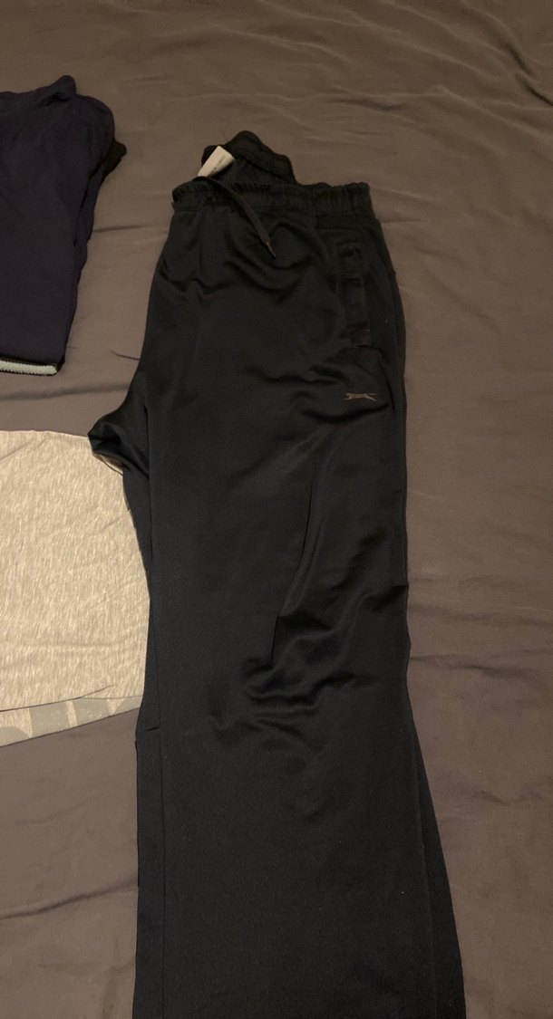 Fermuarlı cepleri ve sentetik kumaşıyla, günlük kullanım için uygun, dar kesim siyah erkek eşofman altı.