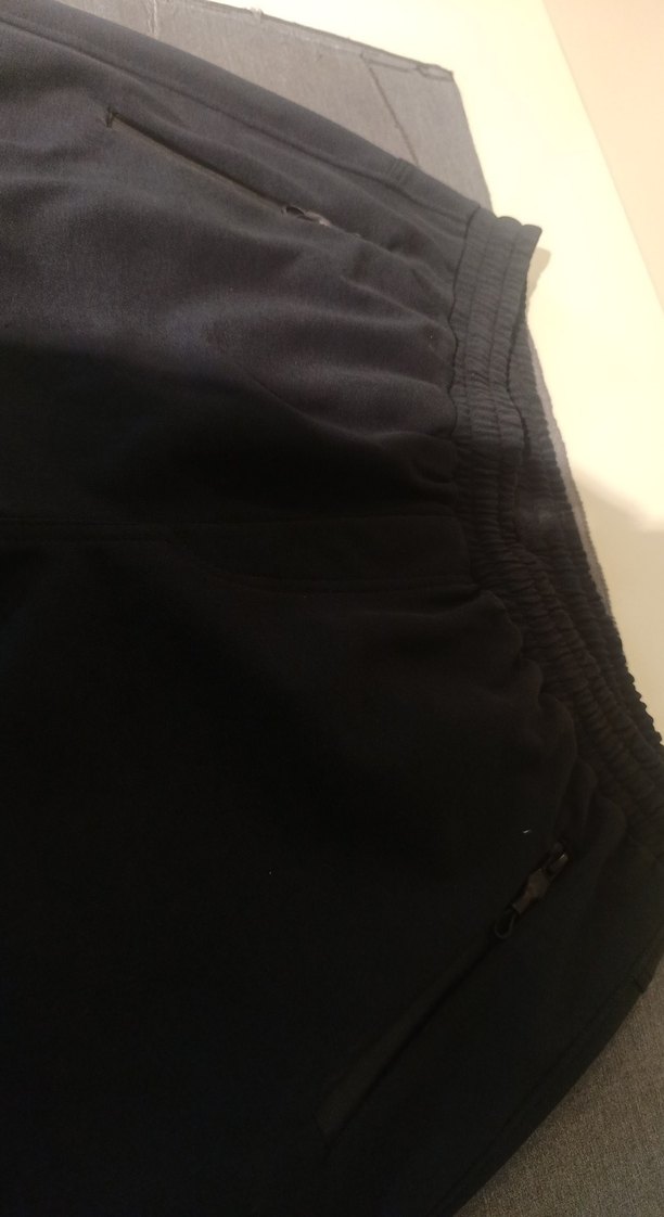Sentetik kumaştan siyah, fermuarlı cepli, dar kesim erkek eşofman altı, günlük kullanım için sokak stili sunar.