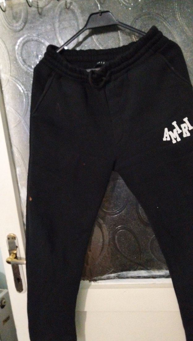 Yumuşak ve sıcak kumaştan, fermuarlı cepleri ve bağcıklı beli olan dar kesim siyah eşofman altı, spor ve günlük giyime uygun. son resimde çamaşır suyu lekesi var