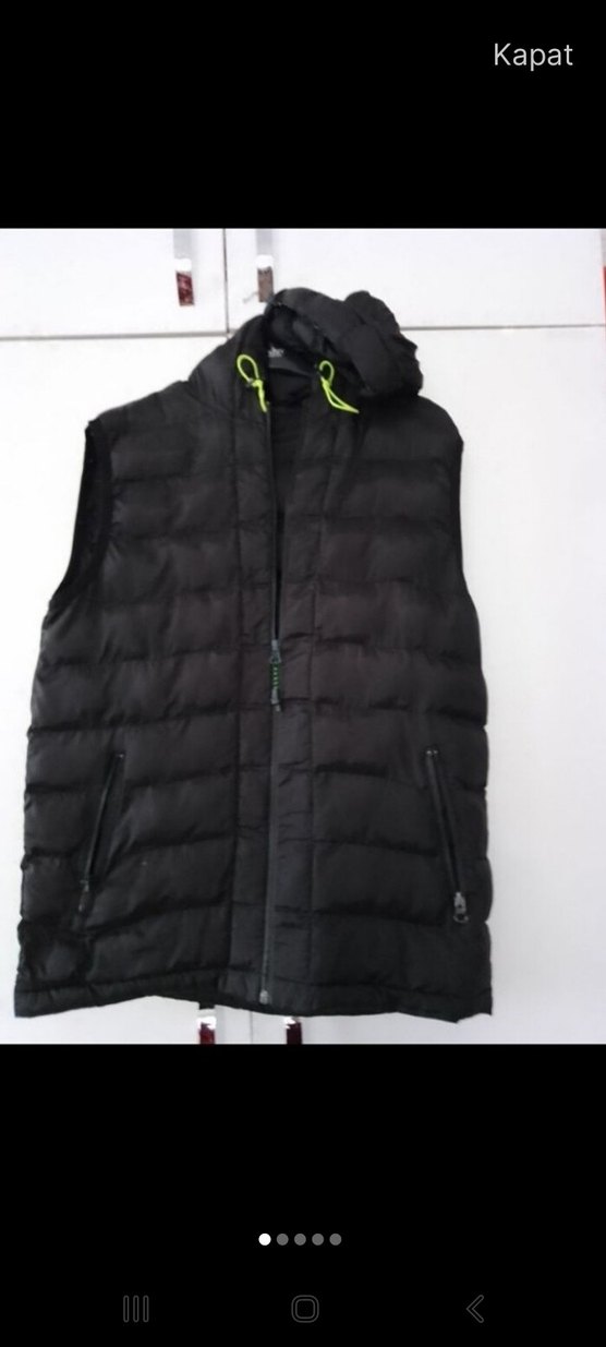 Yüksek yakalı, fermuarlı siyah erkek yelek. Yumuşak ve sıcak kumaştan, dar kesim, iki fermuarlı cep bulunur. Günlük rahat kullanım için uygundur.