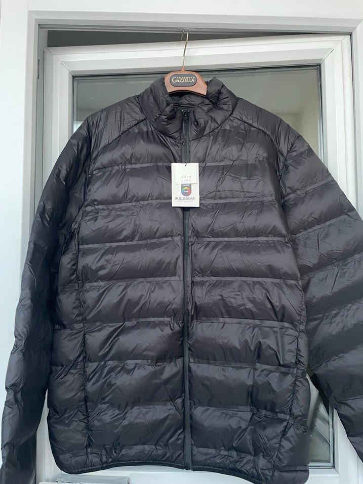 Fermuarlı, uzun kollu, siyah erkek mont. Ürün orjinal pull and bear replika ve çakma değildir.
