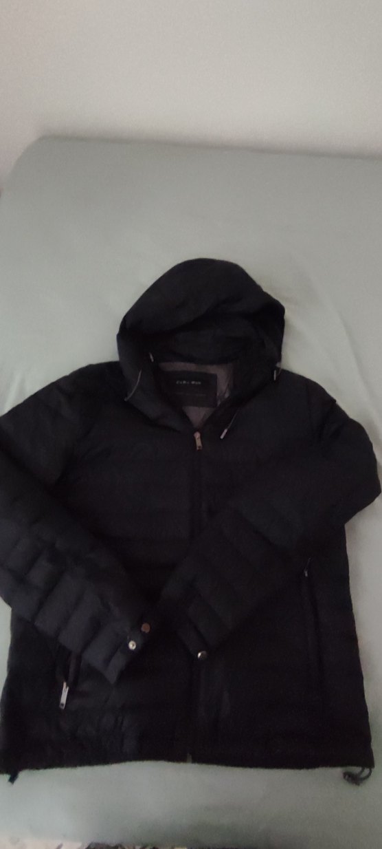 Fermuarlı, yüksek yakalı ve uzun kollu siyah erkek kış mont.Sokak stiline uygun, yumuşak ve sıcak kumaştan yapılmıştır.