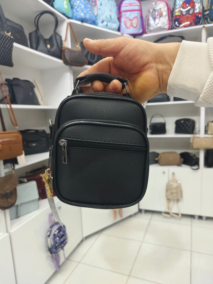 Fermuarlı tasarıma sahip siyah erkek omuz çantası, kompakt sapıyla şık ve kullanışlı bir aksesuardır.