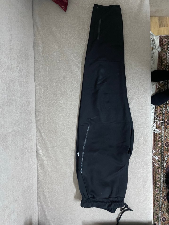 Fermuarlı ceplere sahip, sentetik kumaştan yapılmış siyah, dar kesim erkek outdoor eşofman. Sokak modasına uygun, rahat ve şık görünüme sahip. Arka cep dikişinde sökülme var küçük bir tadilatla sorunsuz olacaktır