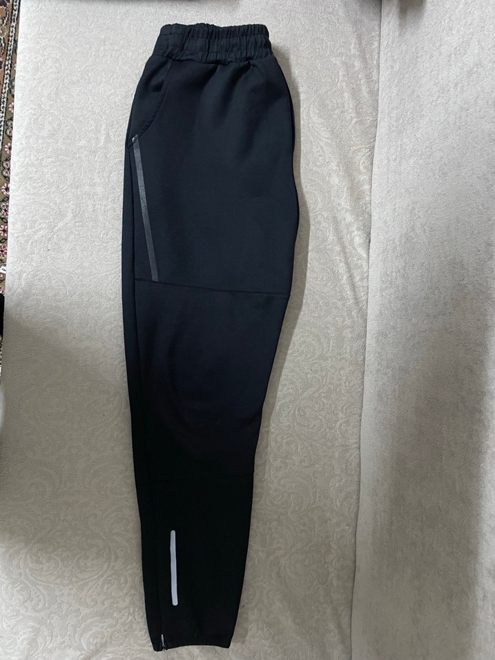 Siyah, fermuarlı ceplere sahip, yumuşak kumaştan yapılmış erkek outdoor eşofman altı. Orj olmayabilir emin değilim ama a kalitededir.