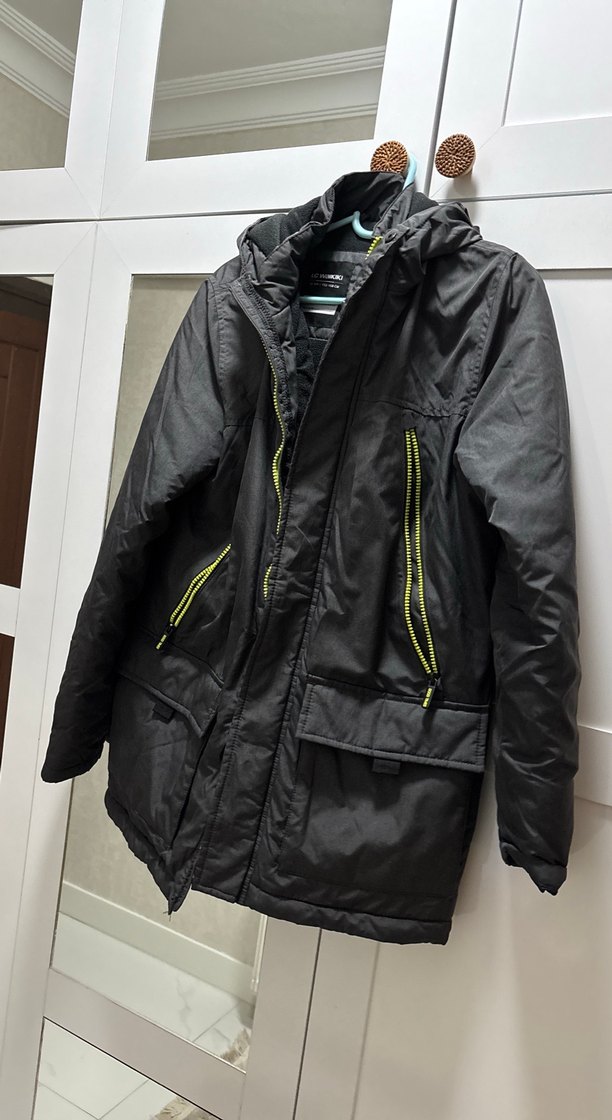 Fermuarlı cepleri, uzun kollu ve kesimli yapısıyla siyah erkek mont. İç kısmı sıcak tutan yumuşak kumaşla kaplıdır. Erkek çocuk 12.13 yaş