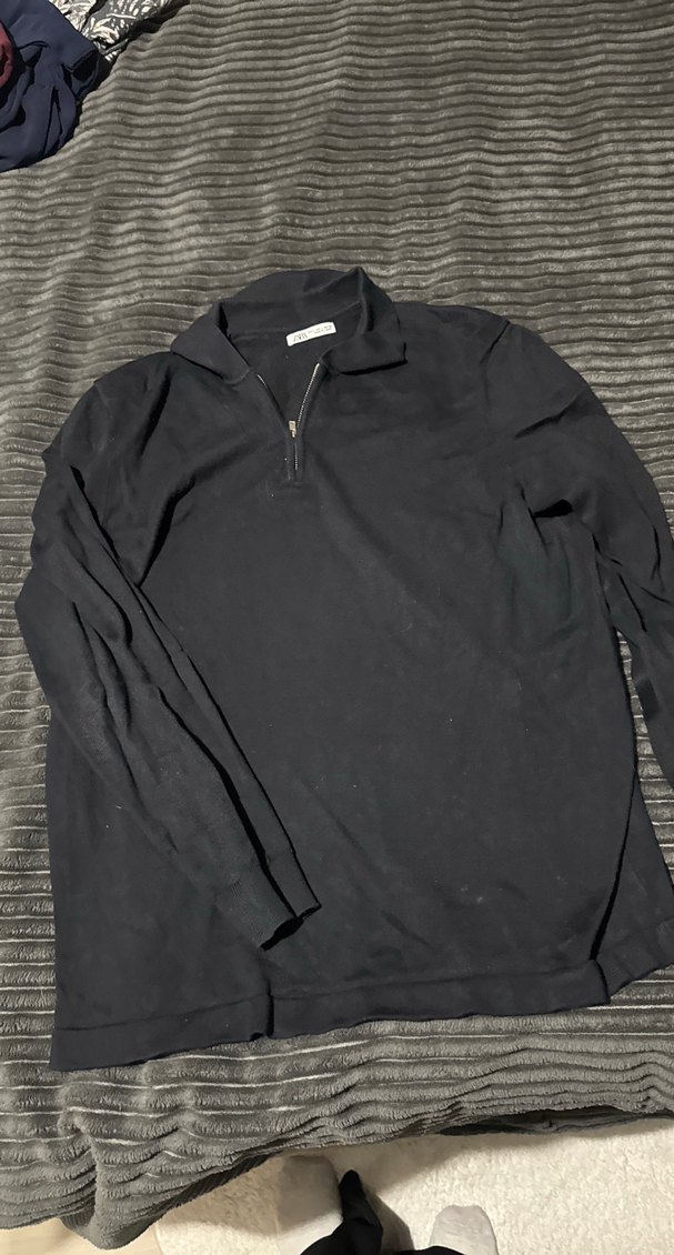 Fermuarlı yakaya sahip siyah erkek sweatshirt, uzun kollu ve keten kumaştan, rahat kesim, gündelik sokak tarzı için uygundur.