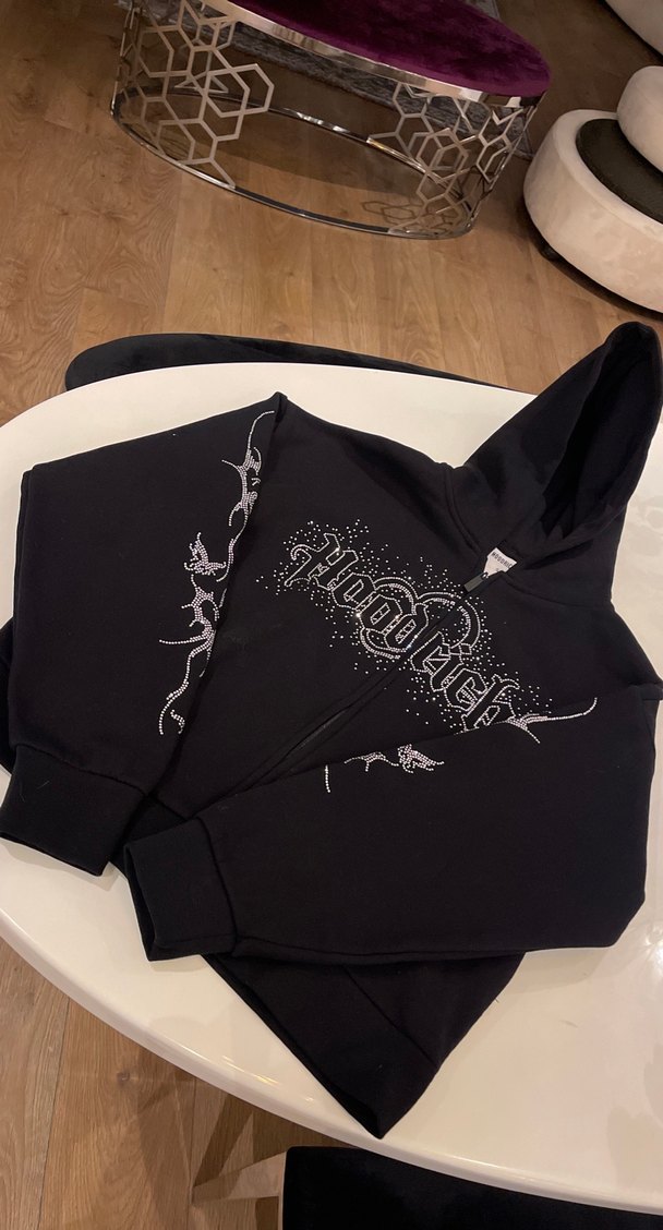 Siyah goth tarzı çeket, uzun kollu, kapüşonlu ve tam fermuarlı. Gevşek kesim ve baskılı desenlere sahip, rock punk havası için ideal etiketlidir fiyatta yardımcı olurum