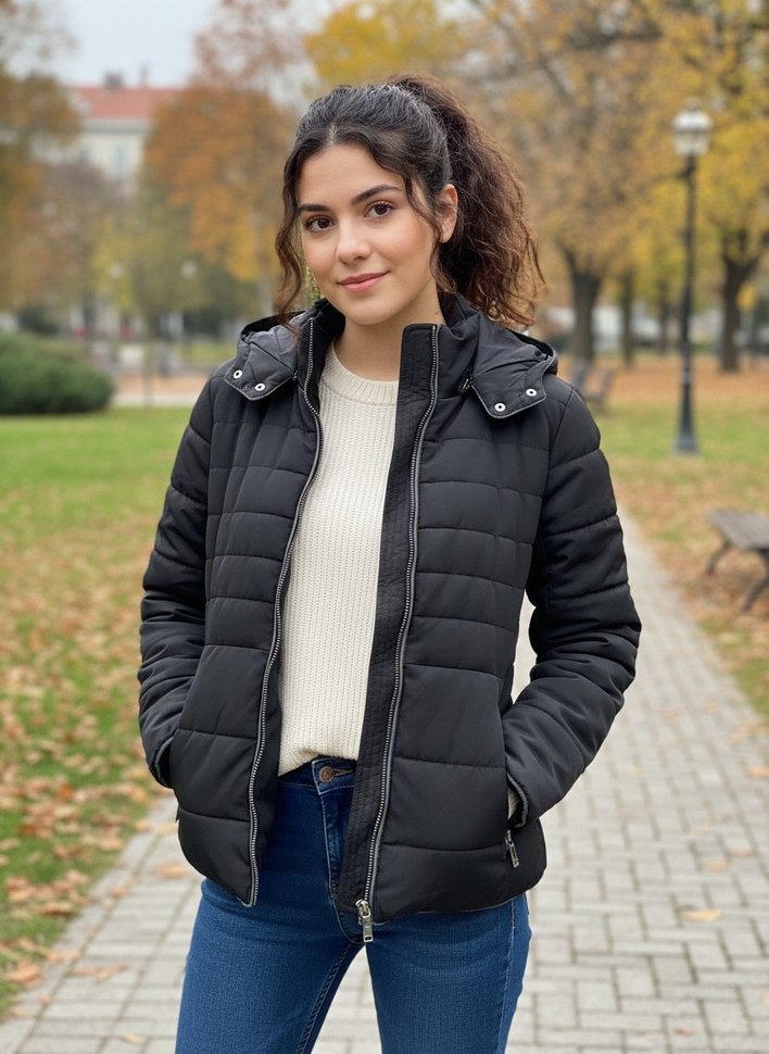 Fermuarlı Siyah Günlük Kadın Kışlık Ceket
