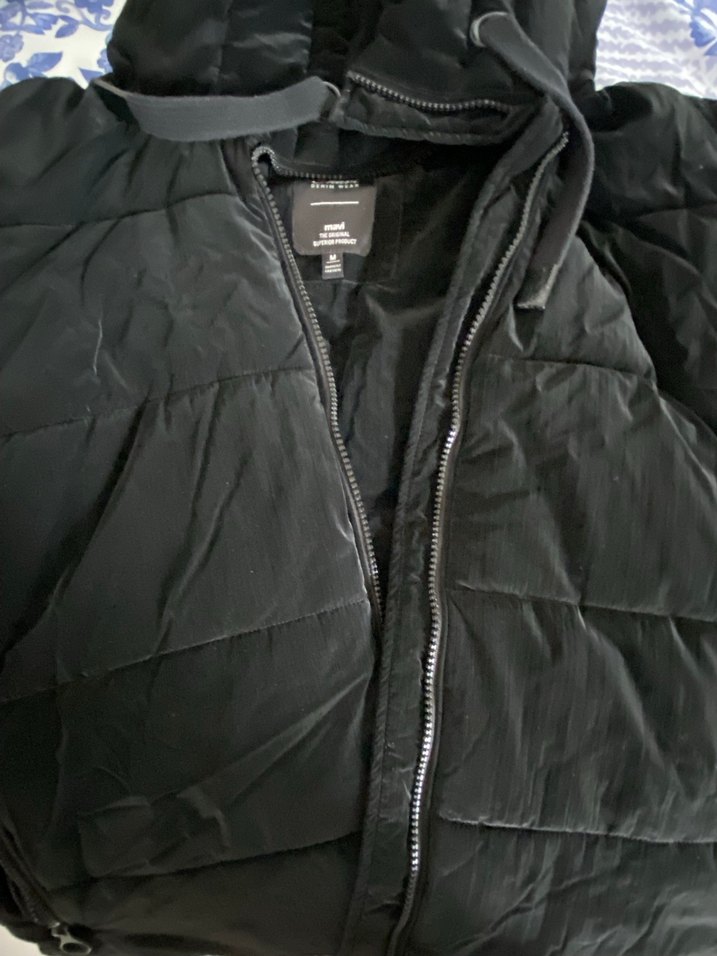 Fermuarlı, kesimli yakalı ve siyah renkli bu kadın ceketi, sentetik kumaştan üretilmiş. Askılı kollara ve midi boy uzunluğa sahip, dış mekan için uygun. Sadece ve e yaka kısmında soyulma var tamir edilebilir