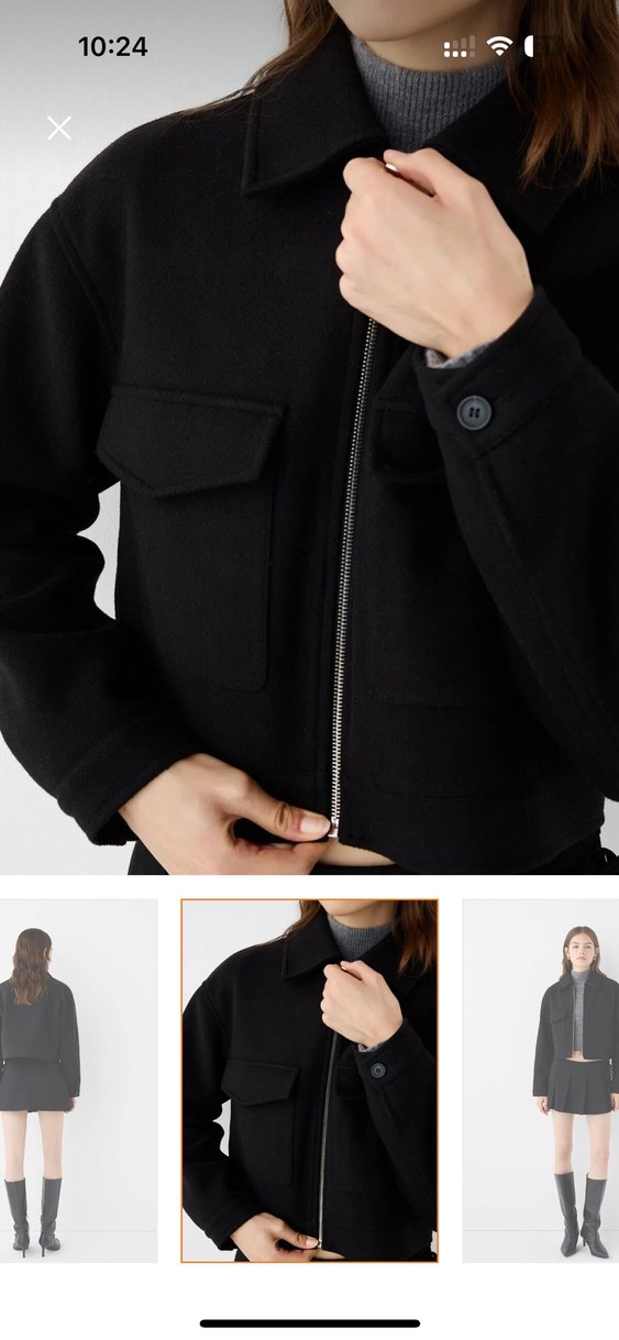 Fermuarlı, yakalı ve uzun kollu siyah bu ceket, yumuşak ve sıcak kumaştan üretilmiştir. Günlük ve şık sokak stiline uygundur.