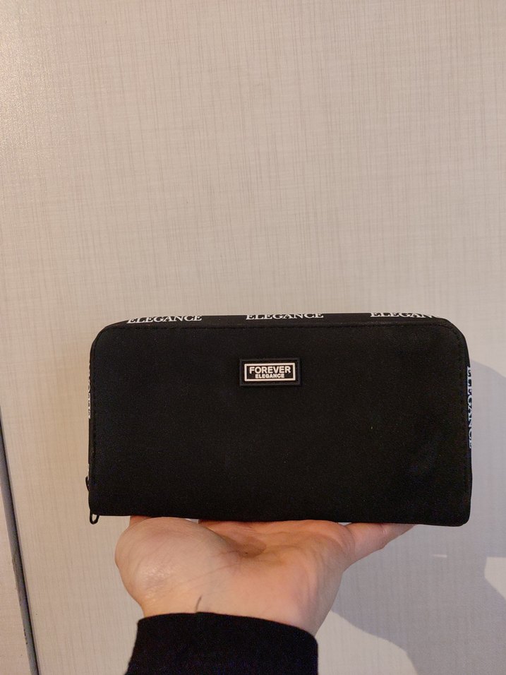 Bu siyah kadın cüzdan, fermuarlı kapama ve baskılı desene sahip, yumuşak ve sıcak kumaştan yapılmıştır, günlük kullanım için uygundur.