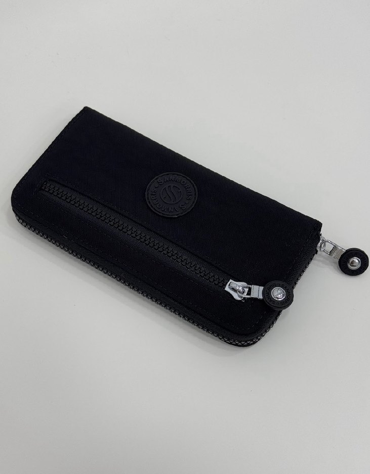 Fermuarlı tasarıma sahip siyah kadın cüzdanı, yumuşak ve sıcak kumaştan üretilmiştir. Minimalist gotik stilde, desensiz ve günlük kullanıma uygundur.