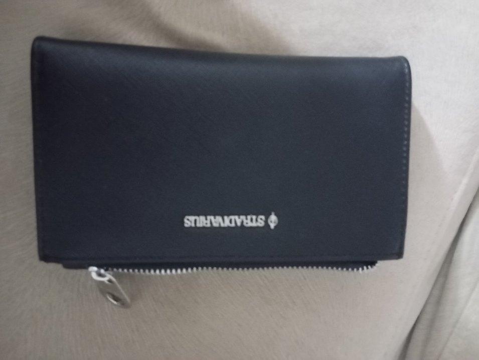 Sentetik kumaştan fermuarlı siyah kadın cüzdanı, günlük kullanım ve rahat iş stiline uygun baskılı detaylarla.