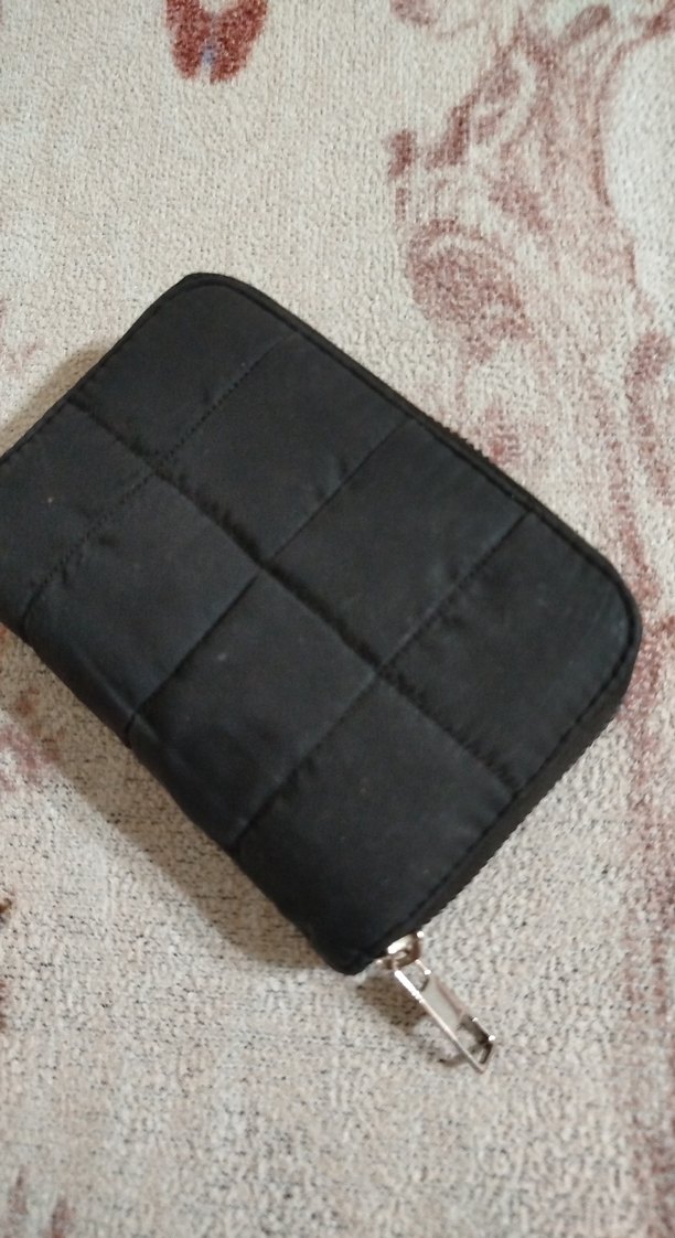 Fermuarlı kapanışa sahip siyah kadın cüzdanı, sentetik kumaştan üretilmiştir. Günlük kullanım için sade ve desensiz tasarıma sahiptir.
