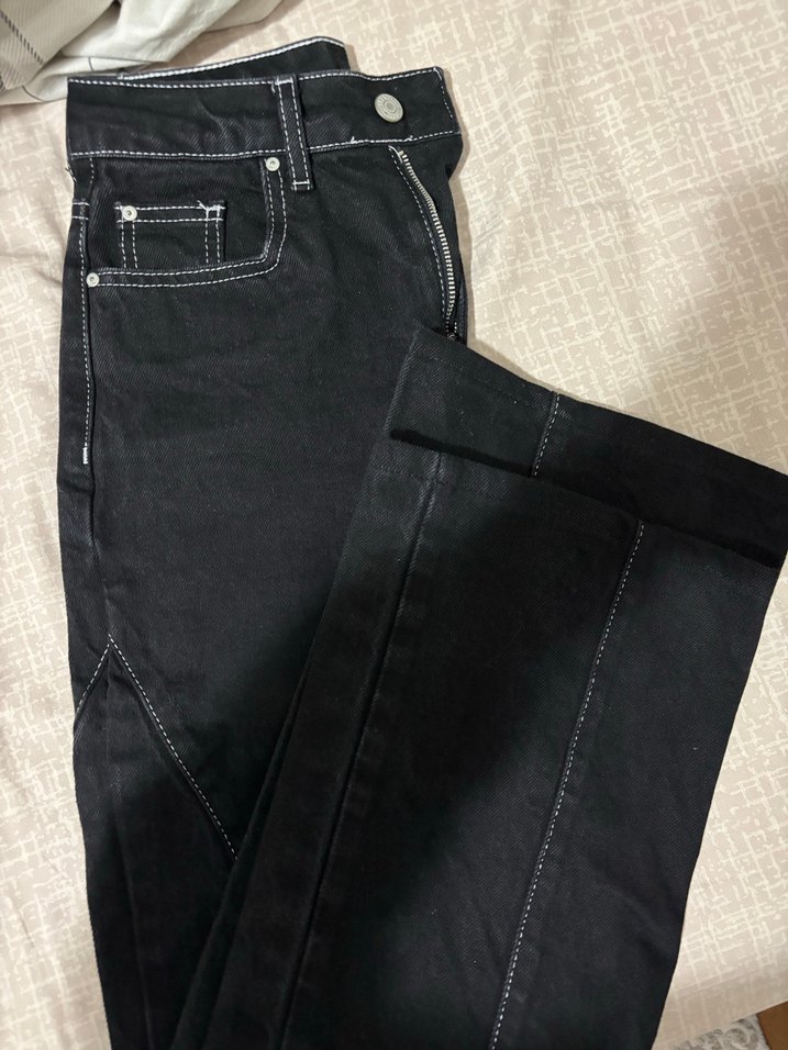 Fermuarlı detaylara sahip siyah kadın denim pantolon
