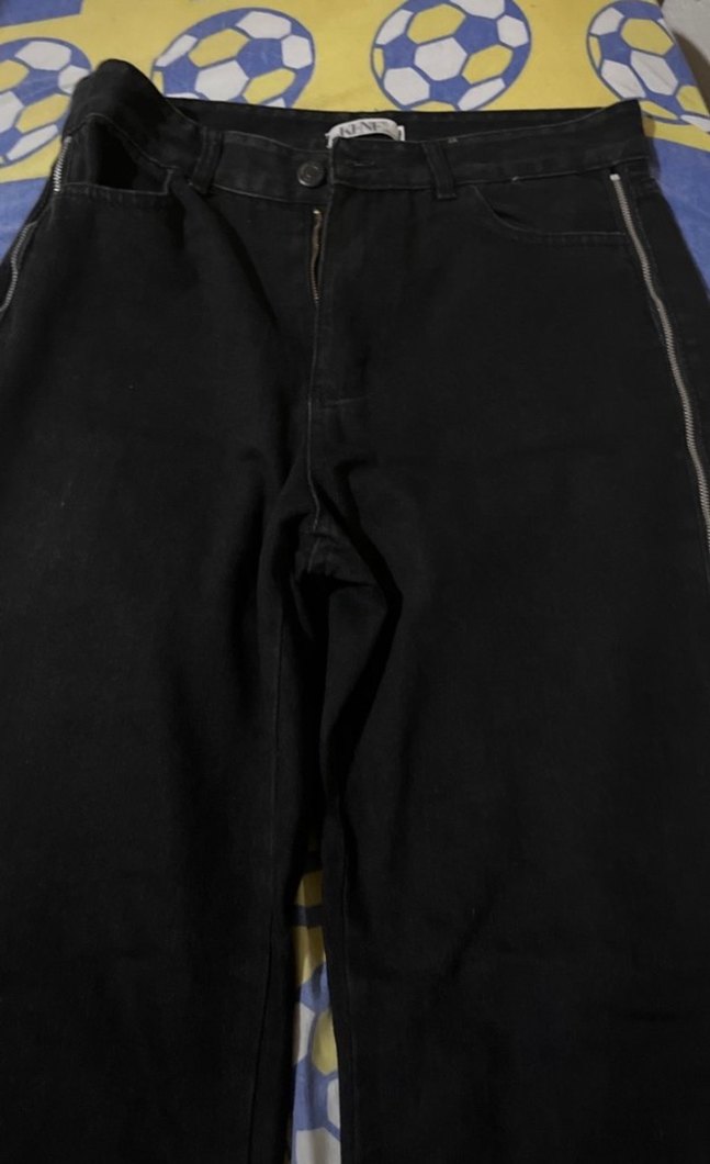 Fermuarlı detaylara sahip, normal boyda, siyah renkli, dar kesim kadın denim pantolon, sokak stiline uygun.