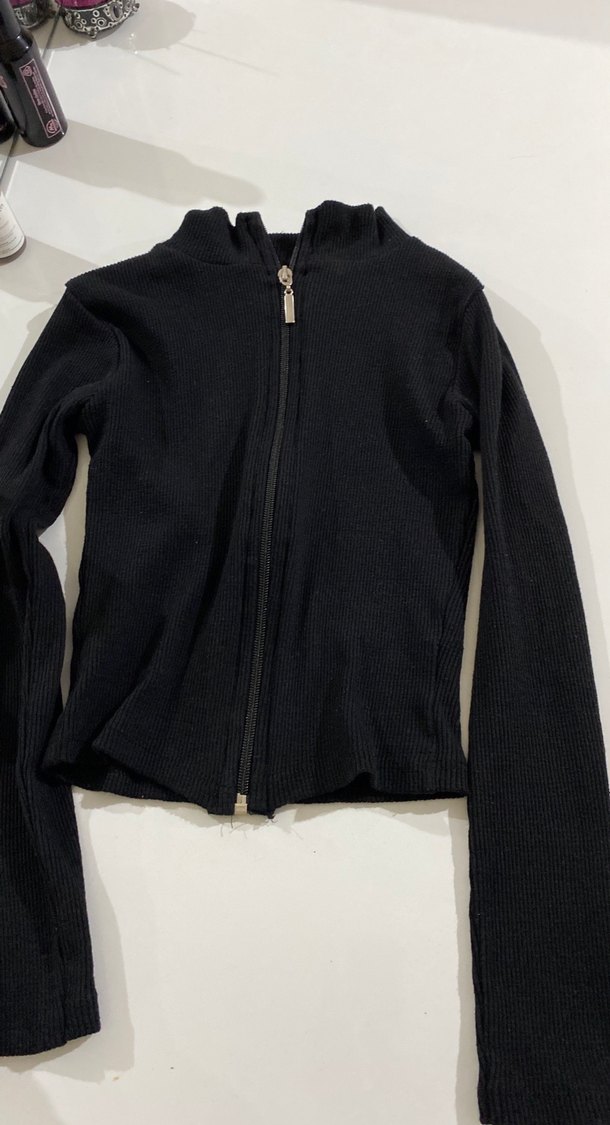 Fermuarlı, uzun kollu, yüksek yakalı ve keten kumaştan yapılmış siyah, vücuda oturan kadın ceketi. Normal midi boyunda, düz ve desensiz tasarımıyla günlük kullanıma uygundur.