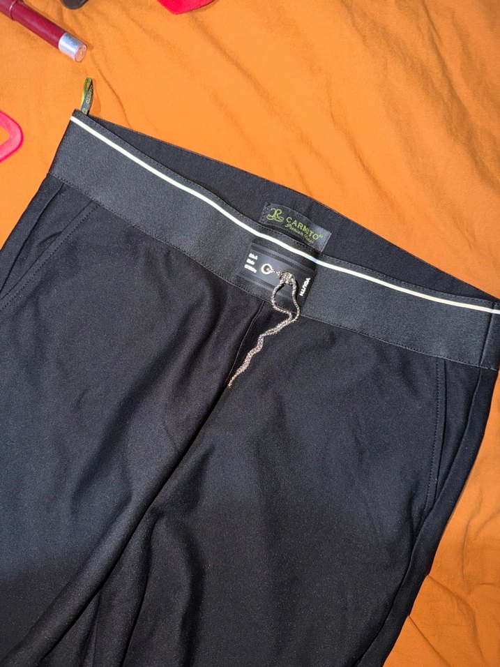 Fermuarlı, düz siyah kumaş pantolon, regular fit ve midi boyda. Sentetik yumuşak kumaştan, dış mekan ve sokak stili için uygundur.