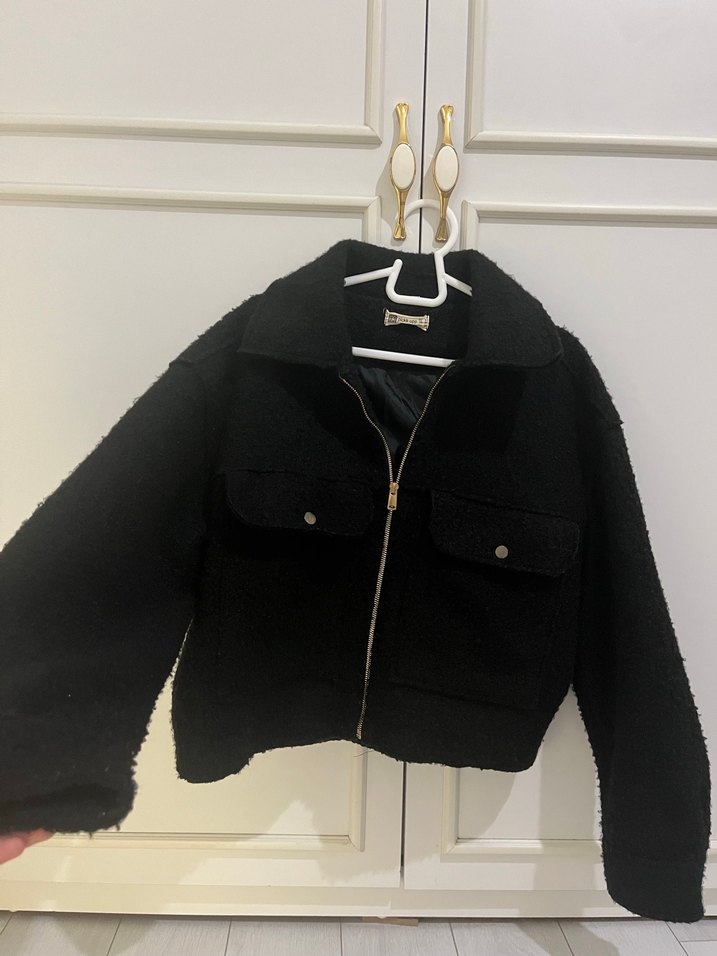 Yumuşak ve sıcak kumaştan yapılmış, fermuarlı, kesimli siyah midi ceket. Uzun kollu ve yakası kesik detaylıdır, günlük kullanım için uygundur. zara muadili