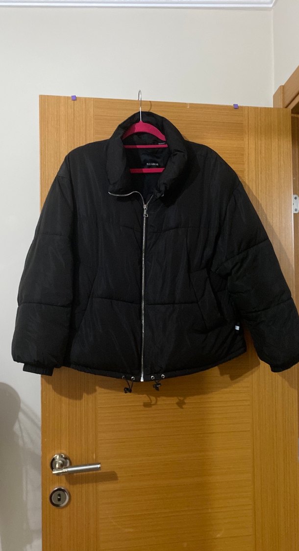 Fermuarlı siyah, rahat dokulu kumaştan üretilmiş, uzun kollu, normal midi uzunlukta ve notlu yaka detaylı kadın ceket. Sokak stili için uygun.