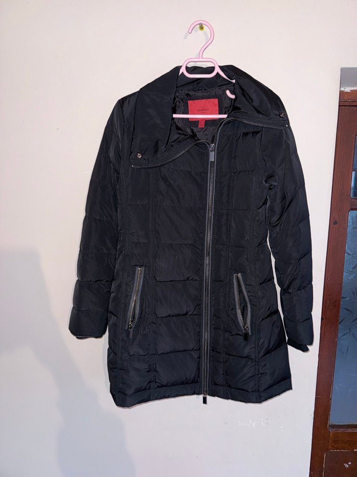 Fermuarlı Siyah Kadın Midi Mont MANGO MARKA