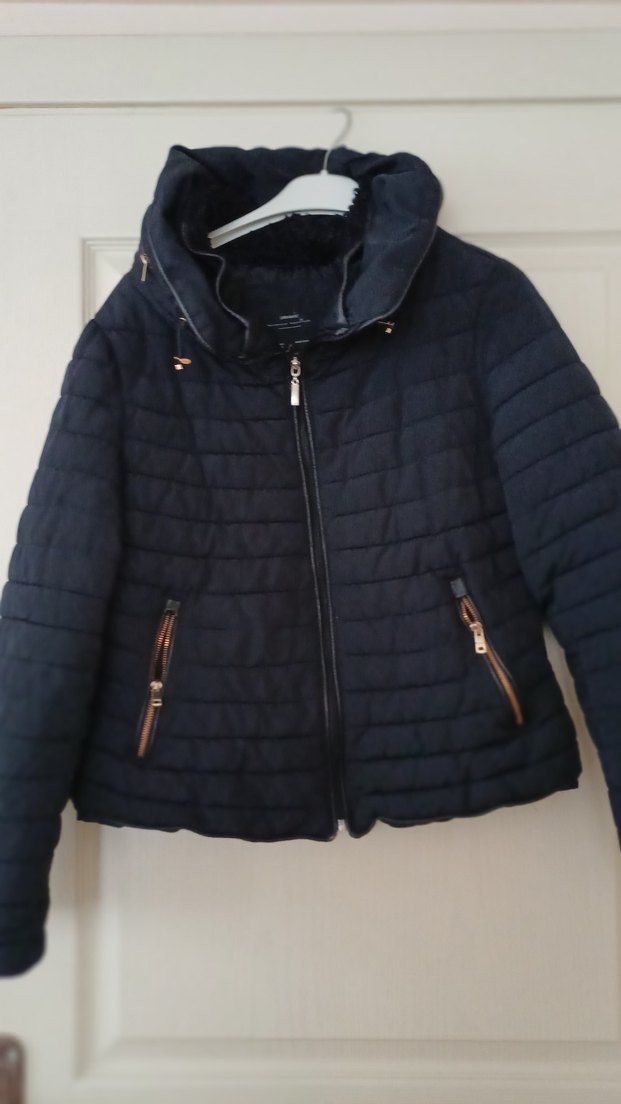 Fermuarlı ve yüksek yakalı siyah, dar kesim kadın mont. Yumuşak ve rahat dokusu, günlük kullanım için uygun. on kısmında biyere takıldı ıgneyle tuturdum fazla beli olmuyor resminide cektim kolagzında hafif deri şeritinde soyulma var.