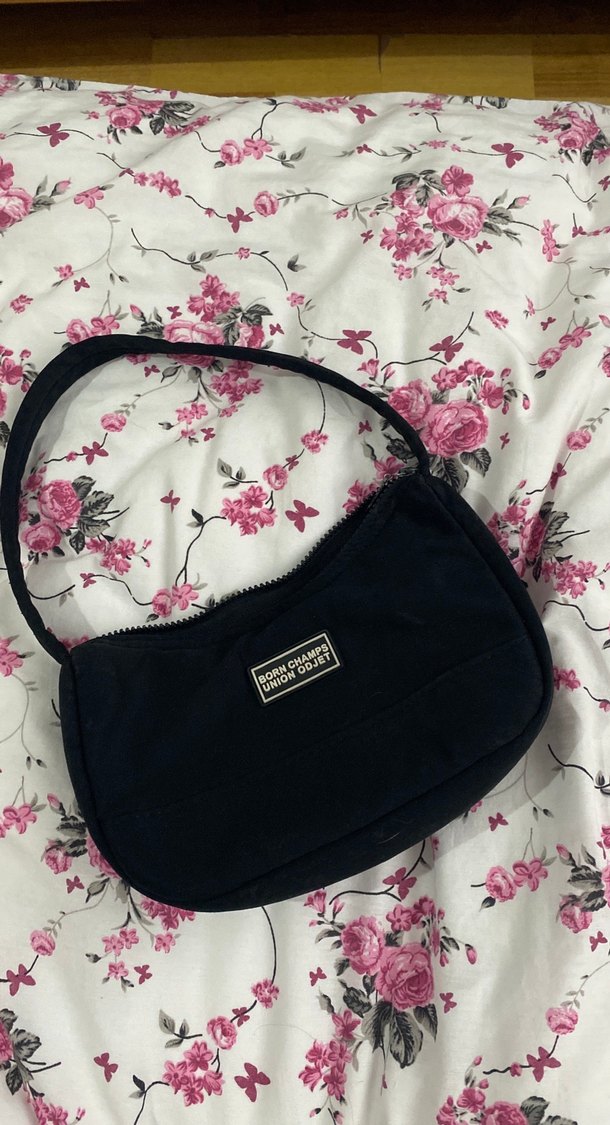 Fermuarlı kapama ve sentetik kumaştan yapılmış siyah omuz çantası, günlük kullanım için uygun sade tasarım.