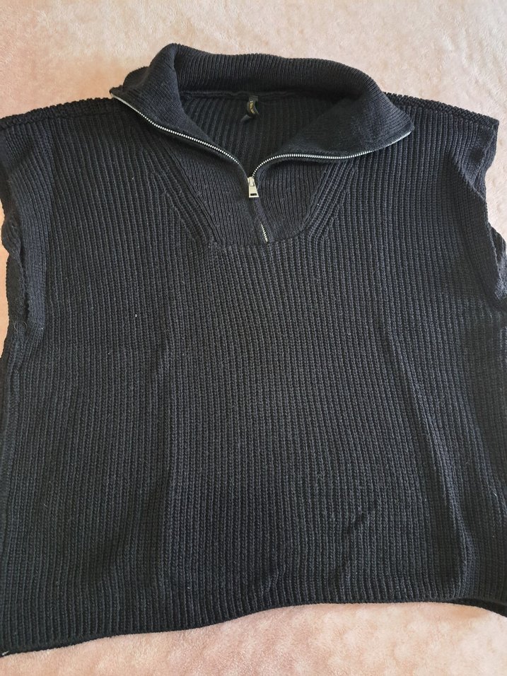 Siyah yün , fermuarlı ön kısmı ve kısa kollu, balıkçı yaka ile rahat ve şık bir görünüm sunar. Günlük kullanıma uygundur.