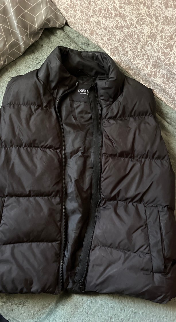 Fermuarlı önü ve kesimli yakasıyla siyah, kolsuz, fitted şişme yelek. Yumuşak ve sıcak kumaştan, rahat ve sokak tarzı için uygundur.