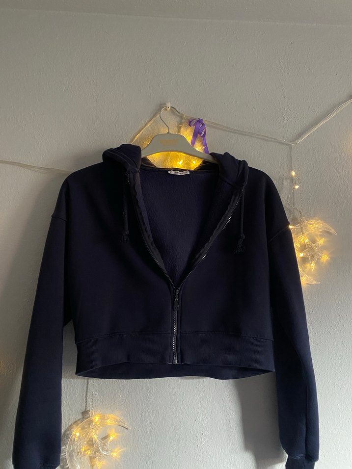 Fermuarlı ve yüksek yakalı siyah, fitted kesim kadın sweatshirt. Yumuşak ve sıcak kumaştan, uzun kollu ve midi boyda, günlük kullanıma uygun.