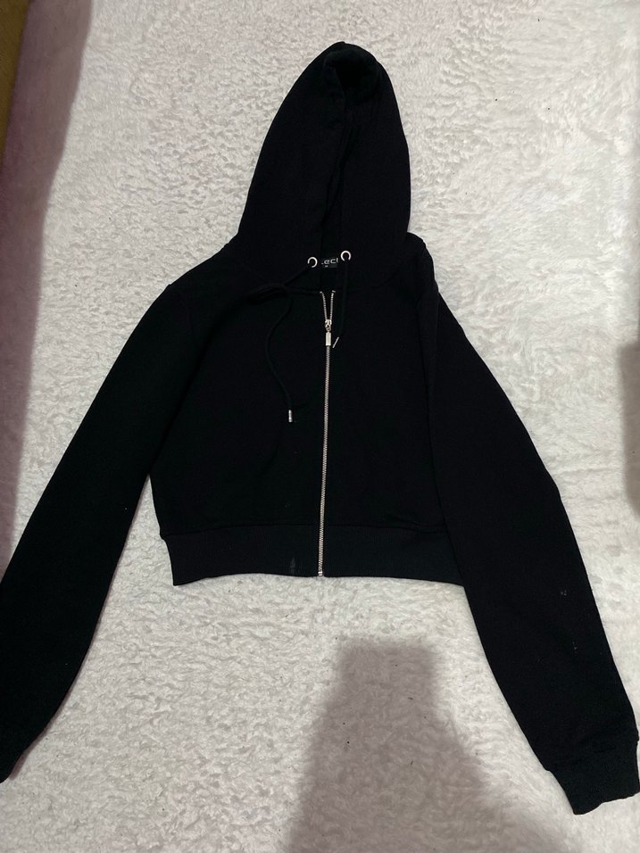 Fermuarlı Siyah Kapüşonlu Kadın Sweatshirt