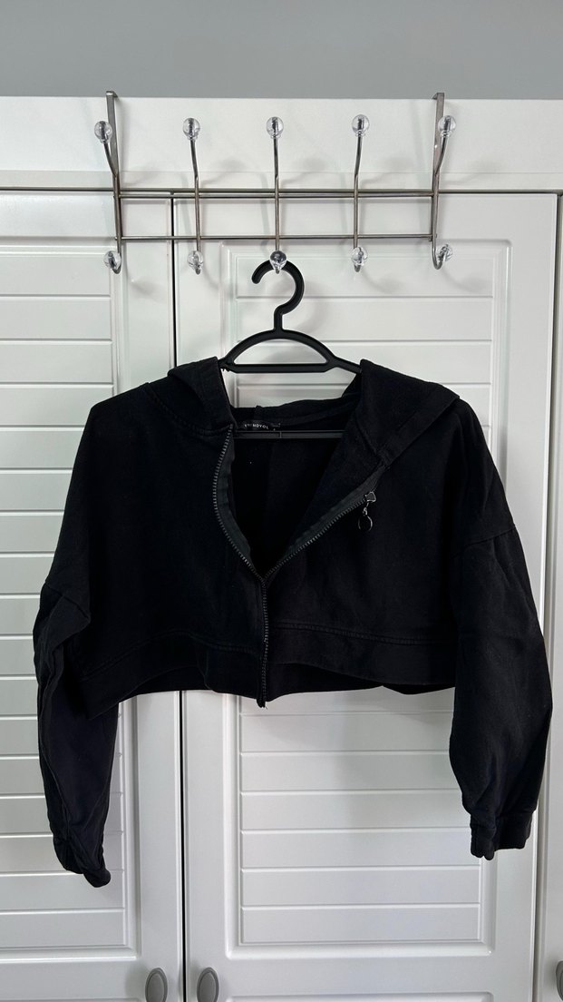 Fermuarlı, uzun kollu ve kapüşonlu siyah sweatshirt, yumuşak ve sıcak kumaştan üretilmiştir. Kısa boyu ile athleisure ve street wear tarzına uygundur.