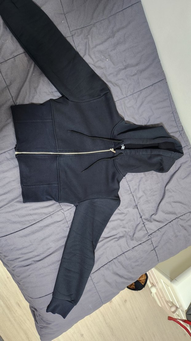 Fermuarlı Siyah Kapüşonlu Korseli Hırka